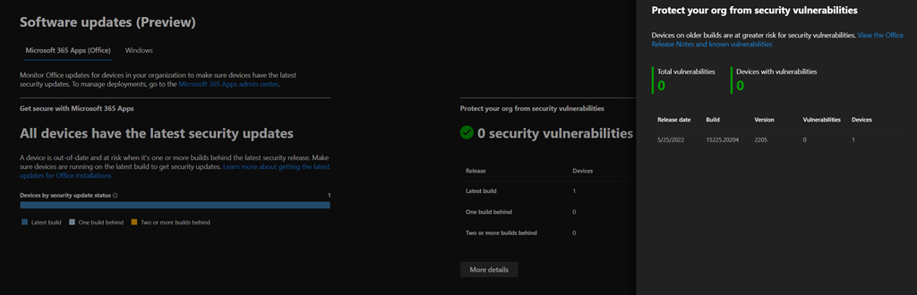If you use Office 365, you can now have a dashboard reporting the update status for Office and Windows of your devices.