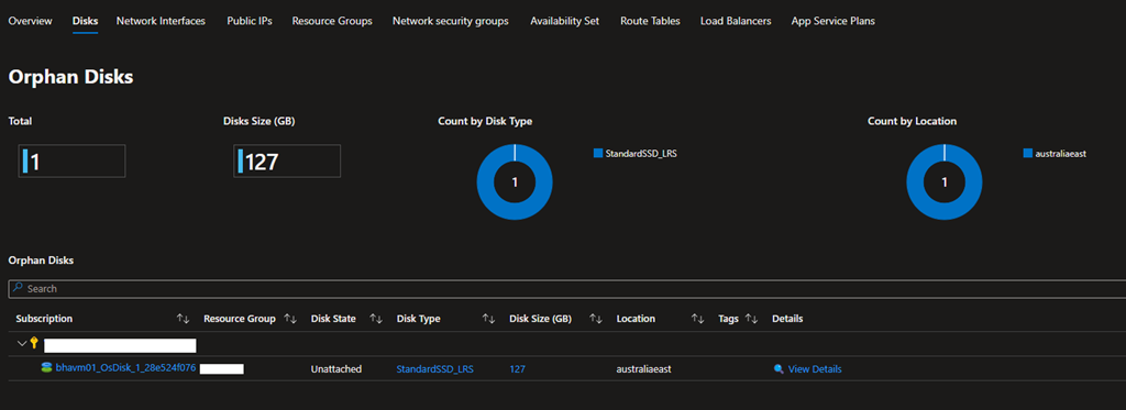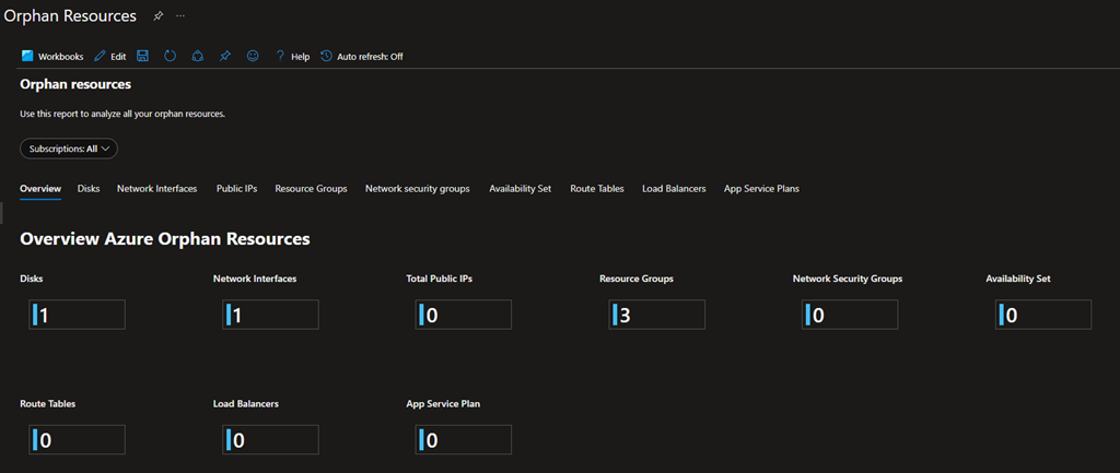 After saving the workbook, you will get a dashboard of the orphan resources found across your environment