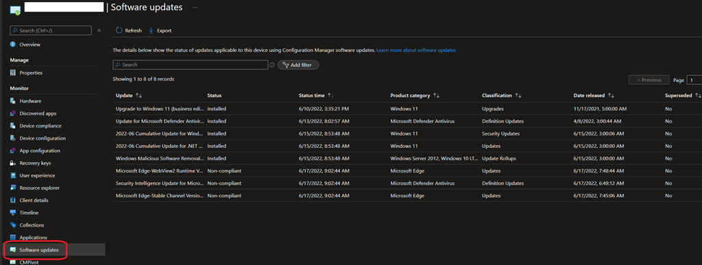 Then you can access the Software updates blade to see which updates are installed and/or missing
