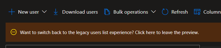 When accessing the users blade, you will see a banner to let you switch back to the ‘old’ experience (which is still the one when you access the Users section)
