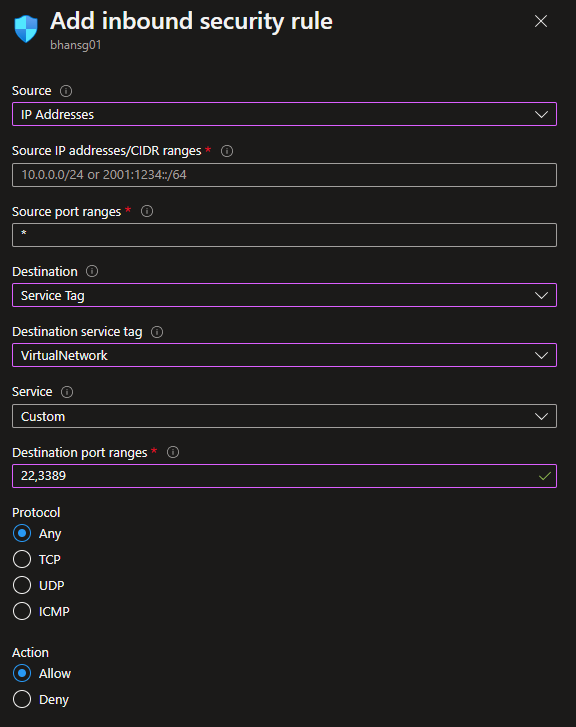 · Configure Network Security Group (NSG) to allow access from specific IP’s on these management ports