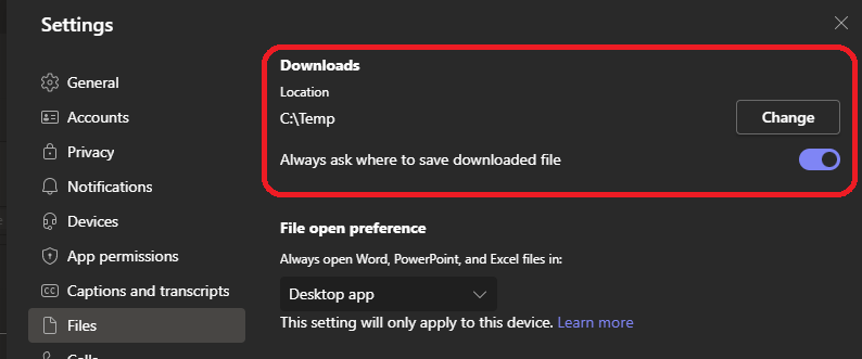 As you already know, you can download files stored in OneDrive, SharePoint or Teams (Teams channel or chat) using the Teams client.