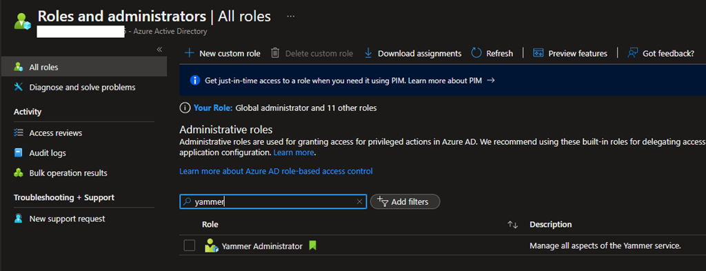 This is going to simplify the Yammer administration delegation as well as letting you use the Azure AD PIM (Privileged Identity Management)
