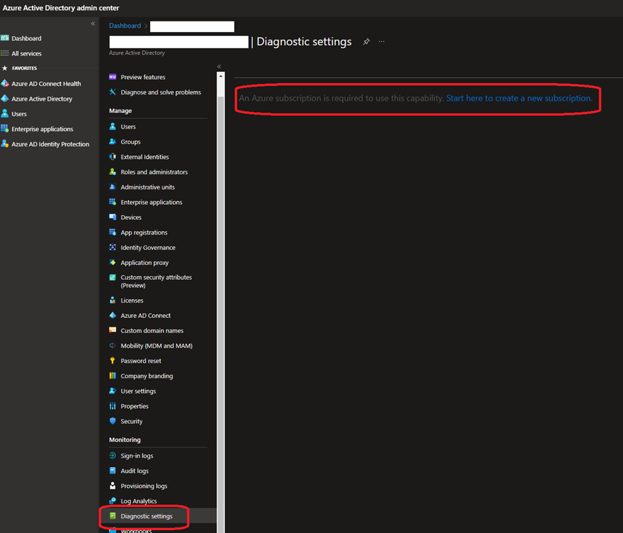 While these Subscription filters are supposed to be in sync (my opinion, and Iām pretty sure it used to be the case in the past), if you are experiencing the above error message when configuring/updating the Azure AD Diagnostic Settings, just double check the Subscription Filter in AAD Portal.