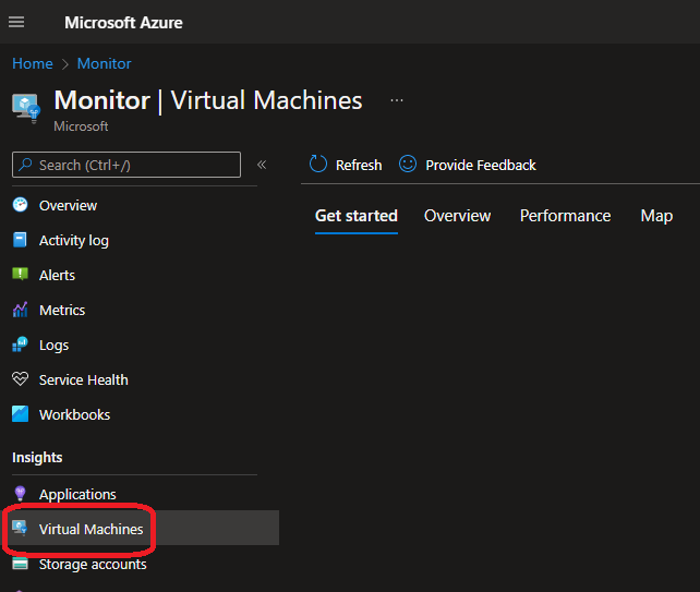 Connect to your Azure portal (https://portal.azure.com/) and search for Monitor to access the Azure Monitor capabilities and then access the Virtual Machines blade