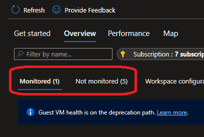 Then you can review which virtual machines are onboarded or not using with either the Monitored or Not Monitored tabs