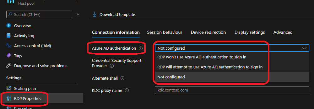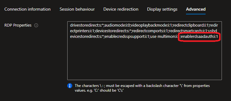 Once you have a supported session host, you can enable SSO by customizing the RDP property by setting the Azure AD Authentication to RDP will attempt to use Azure AD Authentication to sign in (enablerdsaadauth:i:1 if you manually edit the RDP properties)