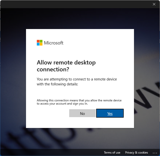When logging on the first time on the session host, user will be prompted to authenticate with Azure AD and allow the remote desktop connection