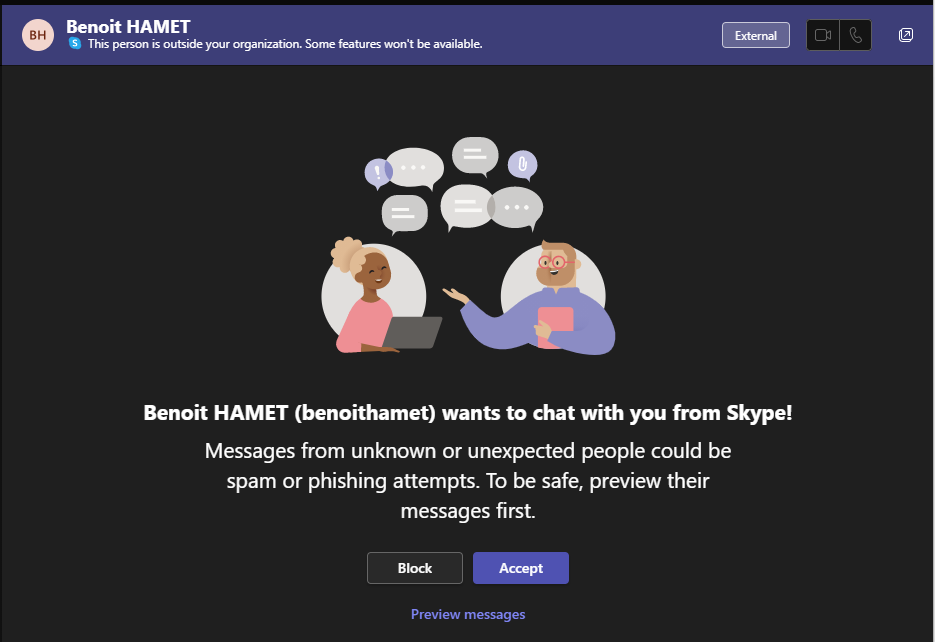 As you may already know, you can chat with external users and external users can initiate chat with you (at the condition your Teams administrators have either all external domains or specific domains, and/or Skype users for external access).