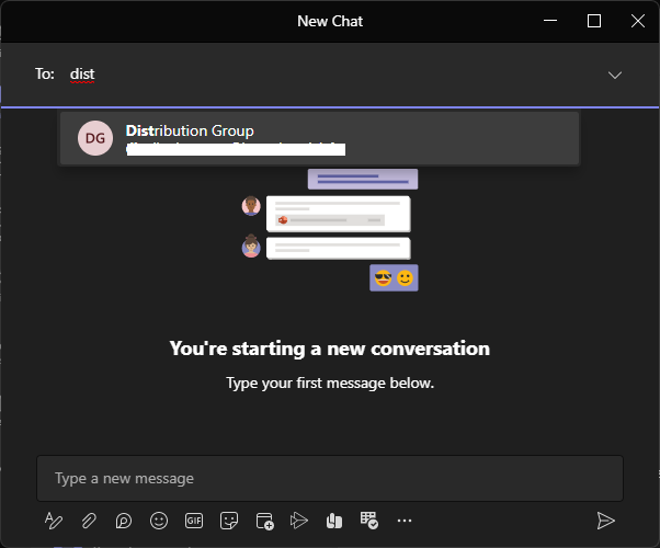 To start a conversation using one of this group type, just start a new conversation and search for the group (either name or email address) you want to start the conversation