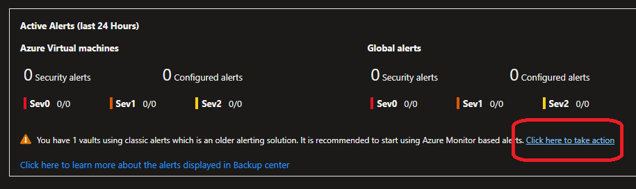 If you were using the classic alerts solution for Recovery Services vaults, it is highly recommended to migrate to use Azure Monitor alerting capabilities.