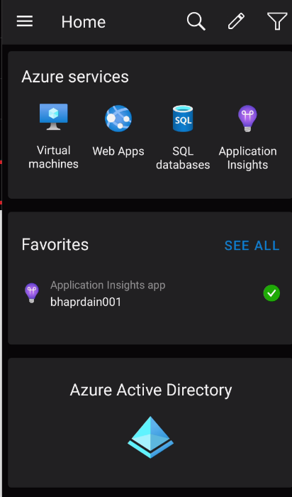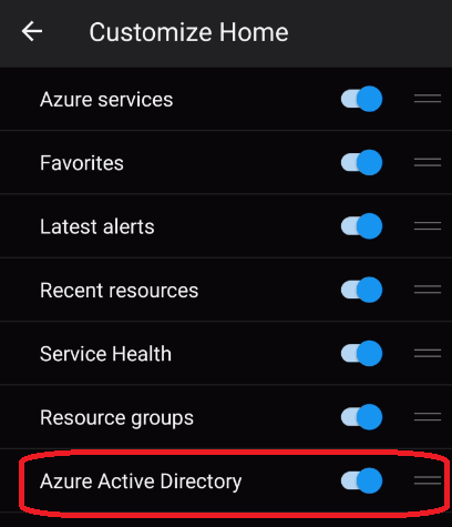 NOTE you may not see immediately the Azure Active Directory blade in the Azure mobile app as it will be at the bottom – you can edit your Home page to move this blade upper
