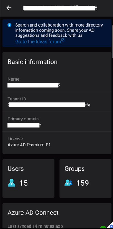 Well, the Azure mobile application has been recently updated to start filling a gap with this application: until now there was no way to have look at the Azure AD tenant when using the application.