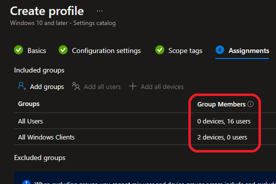 Intune – You can now know to how many users or devices will get the assignment Leave a Comment / Endpoint Configuration Manager, Microsoft Intune / By Benoit HAMET / September 26, 2022 / ECM, Endpoint Configuration Manager, Intune, Microsoft Intune When assigning a configuration profile (or edit existing one) you now can know how many users and/or devices will be impacted by the assignment. This is being helpful to identify if the assigned groups are the correct ones.