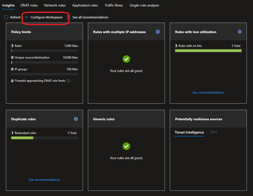 Once you have configured the workspace you will get additional insights, such as potential malicious sources