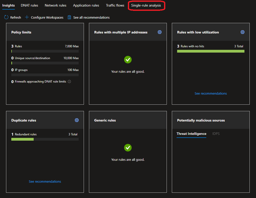 There you will already have a high level Insights of your policy and rules health; you can then quickly have an overview of your policies