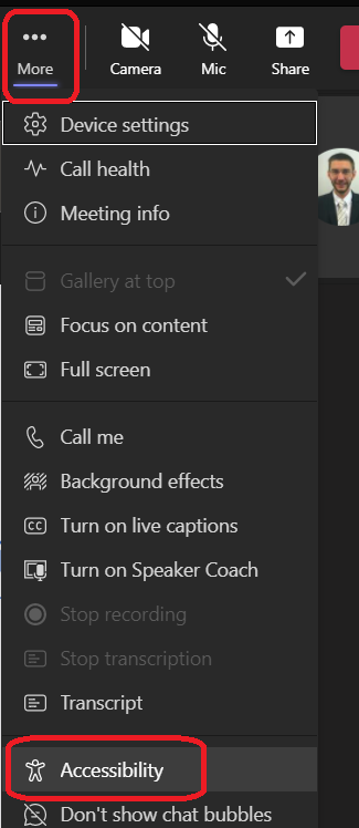 To turn on the sign language view, access the Accessibility option from the More actions (the ellipsis) menu