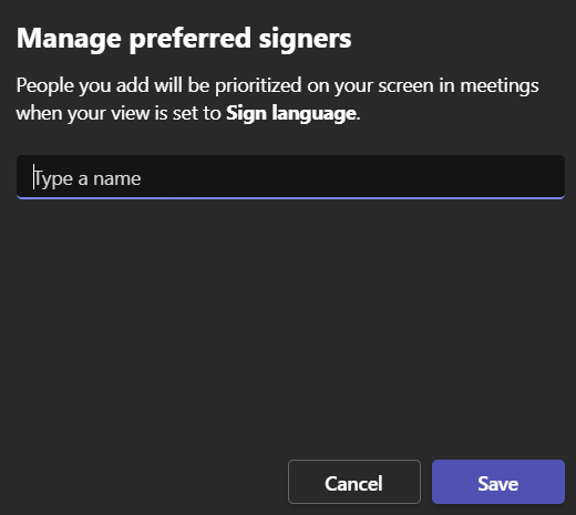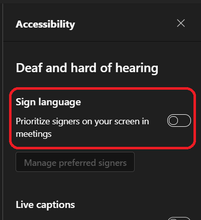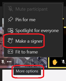 Then turn on the sign language option and select a participant to be your preferred signers