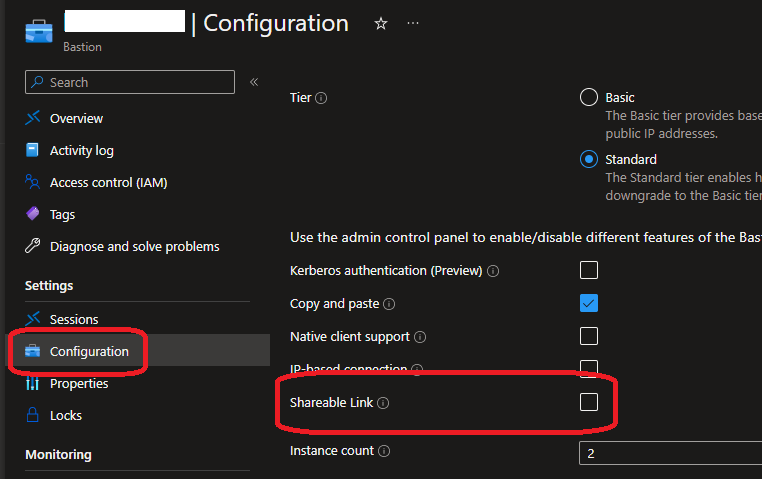 or for existing Bastion, the option is available under the Configuration blade