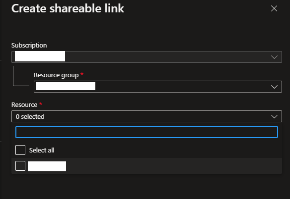This blade allows you to select the virtual machine(s) you want to provide a shareable link for; each virtual machine will have its own link