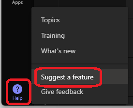 If you use Teams, you are probably aware that end-users can suggest/request a feature from Teams clients (desktop, mobile, web)