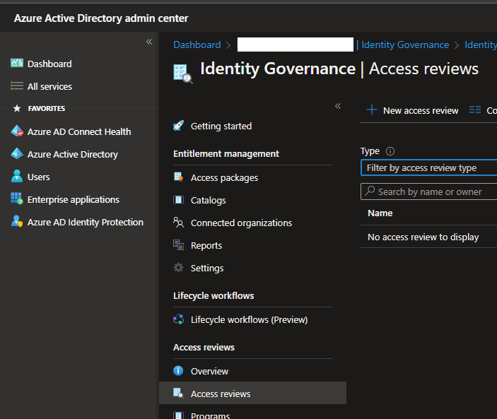To enable this new access review capability, connect to your Azure AD (https://aad.portal.azure.com/) or Entra (https://entra.microsoft.com/) portal to access the Azure Active Directory\Identity Governance\Access Reviews blade