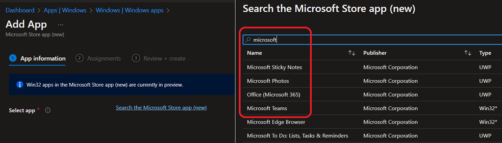 Well, good news as now you have a new experience to deploy applications from Microsoft Store with a search capability