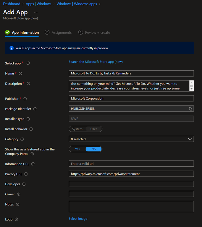 To use it, when adding an application, select the Microsoft Store app (new); note the ‘old’ experience is now called legacy