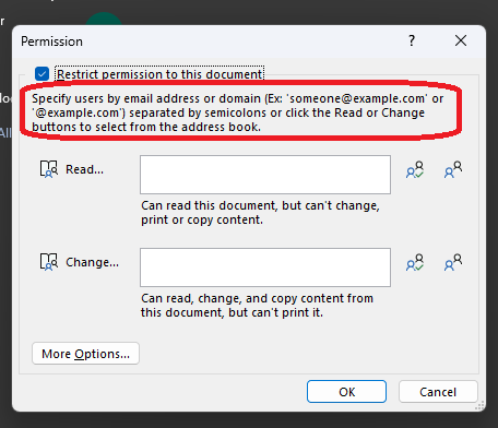 Good news you can now use the domain name to restrict access and permission to Office documents.