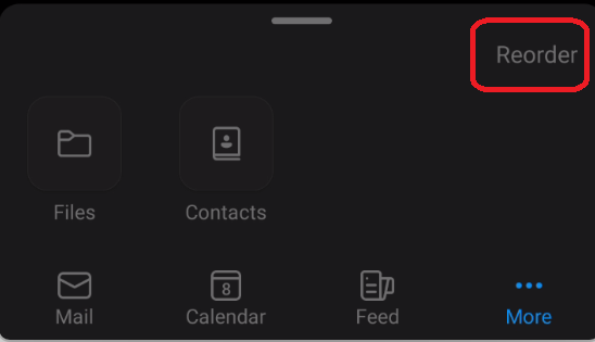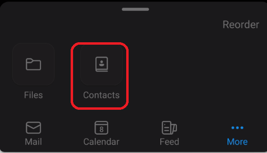 After opening Outlook mobile open the More menu to display the new Contacts option