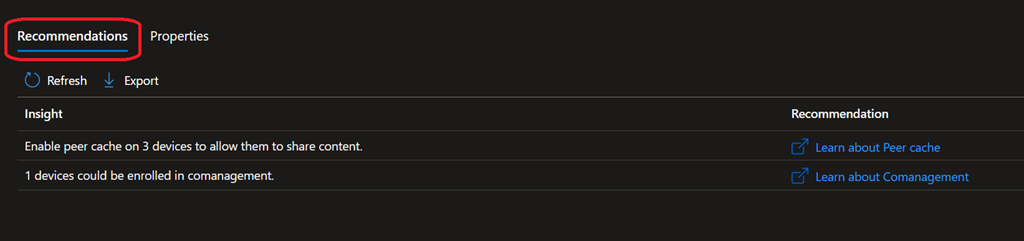 Once you have opened the SCCM site, access the Recommendations tab to view your tailored recommendations and insights; you can even download them in a CSV file