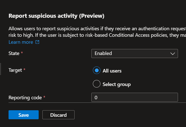 If you have been using the on-premises Azure MFA server (which by the way is going to be fully deprecated – https://azure.microsoft.com/en-us/updates/azure-multifactor-authentication-server-will-be-deprecated-30-september-2024/) you already know that end-users were able to report suspicious activities.