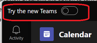 NOTE when turning on the new Teams, a new icon is used in the systray