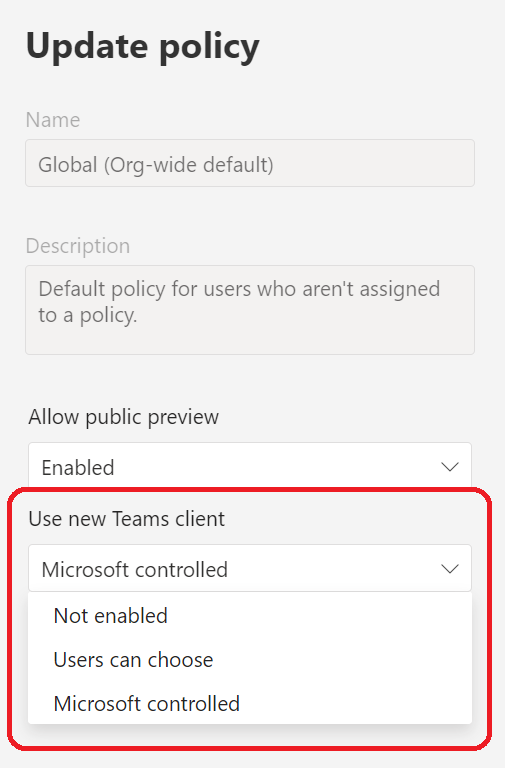 Teams administrator to opt-in for the preview for selected users using the update management policy.