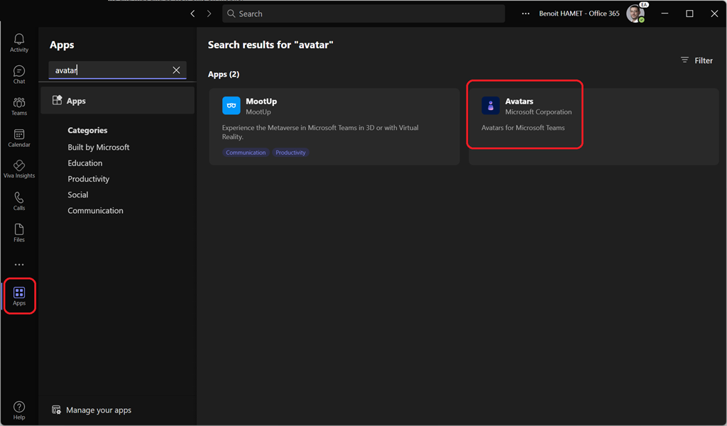 To do so, open your Teams client to access the Apps section to search for avatar