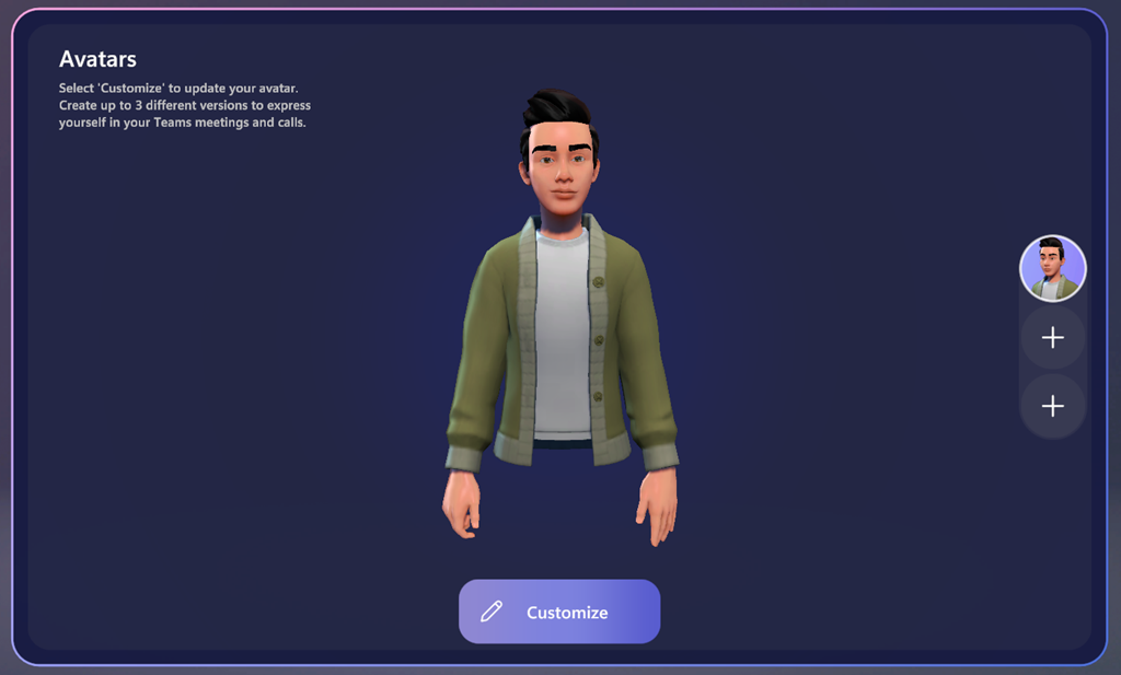 NOTE avatar is only available on Teams client on Windows and Mac and as view only on mobile.