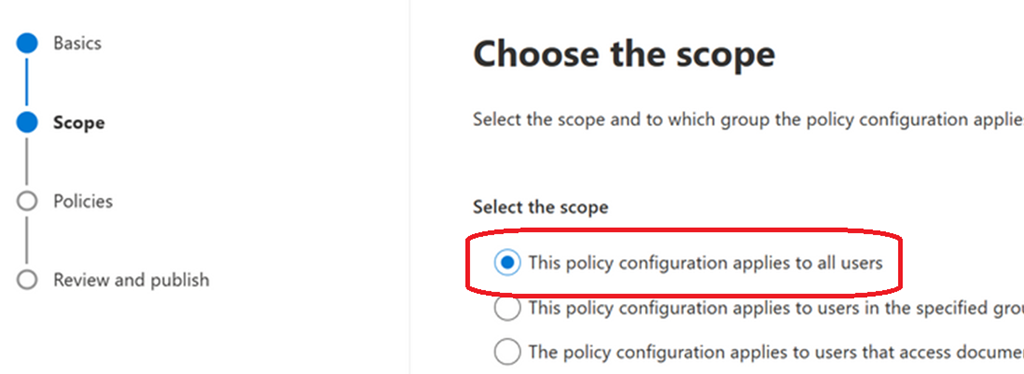 If you want to set the scope to all users for an existing policy, just use the copy capability which will automatically set the scope to all users.