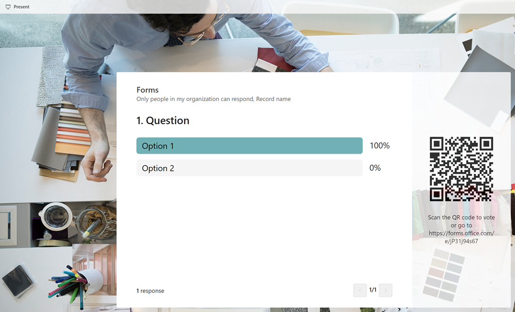 Well good news as you can now easily present the results directly from Forms; it also provide access to the Forms using a QRcode and the short URL.