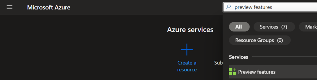 - Connect to your Azure portal (https://portal.azure.com/) and search for Preview features