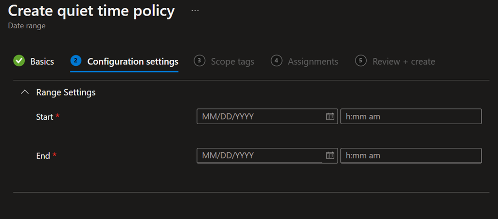 To create such policies, connect to your Intune portal () to access the Apps\Quiet time blade