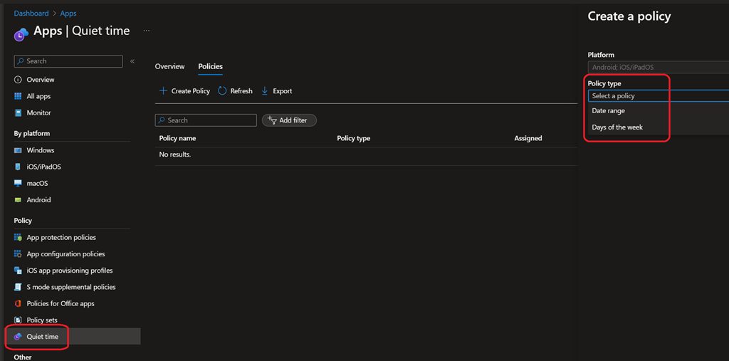 Intune administrators can now use policies to set quiet time for iOS/iPadOS and Android to turn off notification from Outlook and Teams.