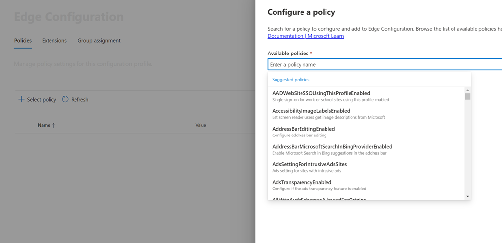 As you know you can control Microsoft Edge configuration either using group policies (for Active Directory joined devices) or Intune (for both AD or Azure AD Joined devices).