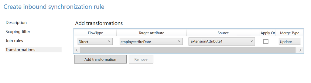 NOTE if you use Azure AD Connect to synchronize your Active Directory you will need to select a custom AD attribute and update your synchronization rules to map this attribute with the employeeHireDate attribute (both inbound and outbound)