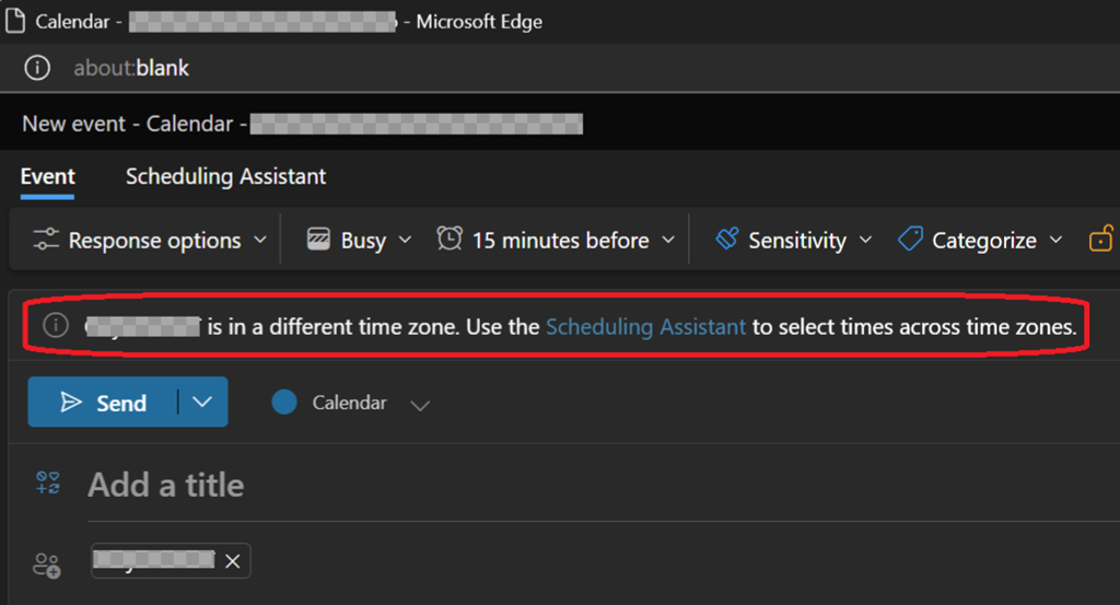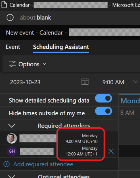 Well, good news as now you will get notified when meeting participants are on a different time zone and then using the scheduling assistant to know their corresponding time zone and local time.