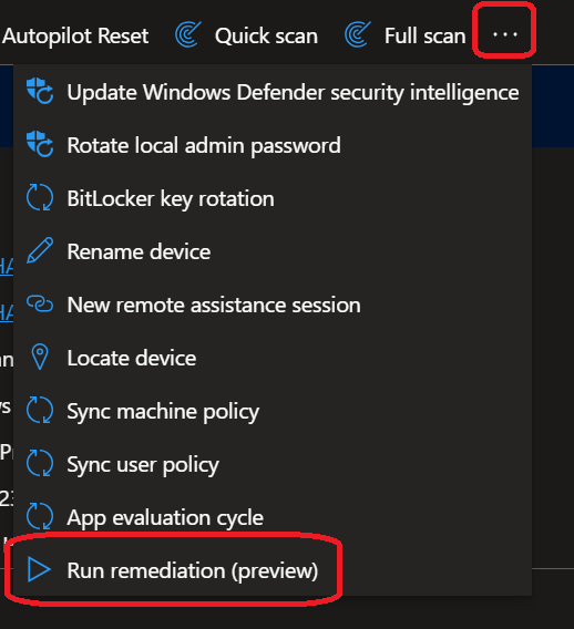 Then open the ellipsis (you know the …) menu and select Run remediation