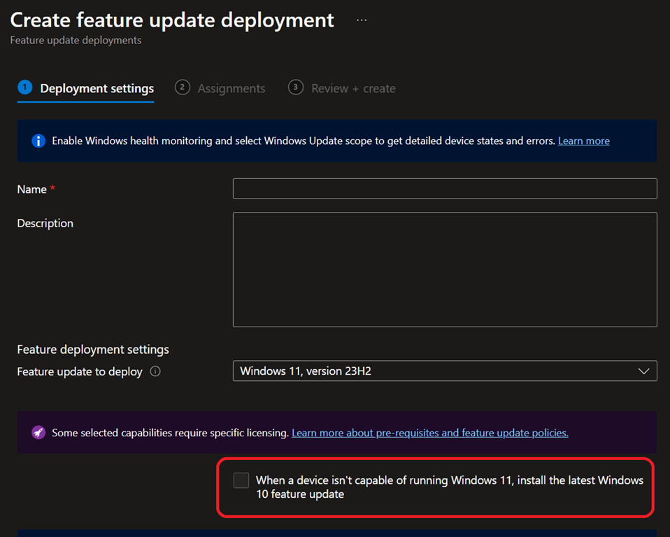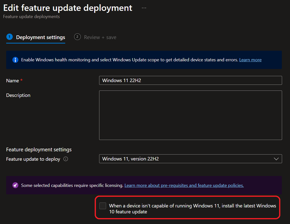 This option is available when creating a Feature Update policy or by editing existing one.
