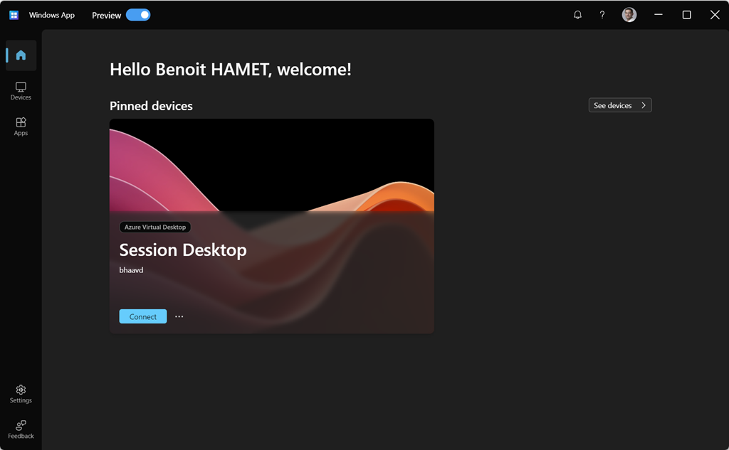 Once signed in, you will automatically get all the cloud devices (AVD, Cloud PC….) and applications you have access to.