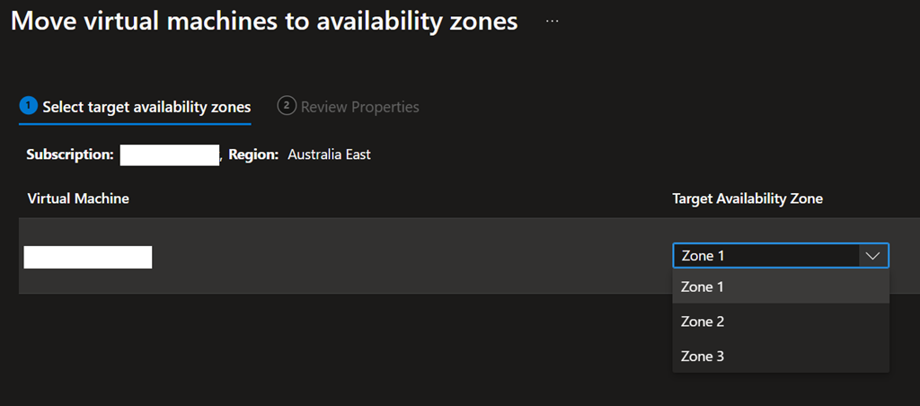 - $targetResourceSettingsObj.TargetAvailabilityZone = “<number of availability zone – 1 to 3>”