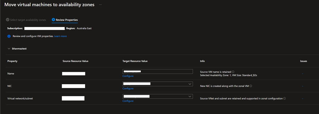 - Once you have enable the availability zone, Azure will perform some prechecks.