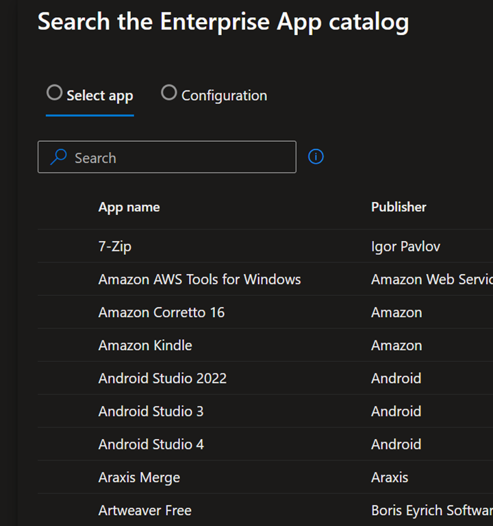 Then you can browse the catalog – the list contains both Microsoft and non-Microsoft applications, based on the most applications used by Enterprise.